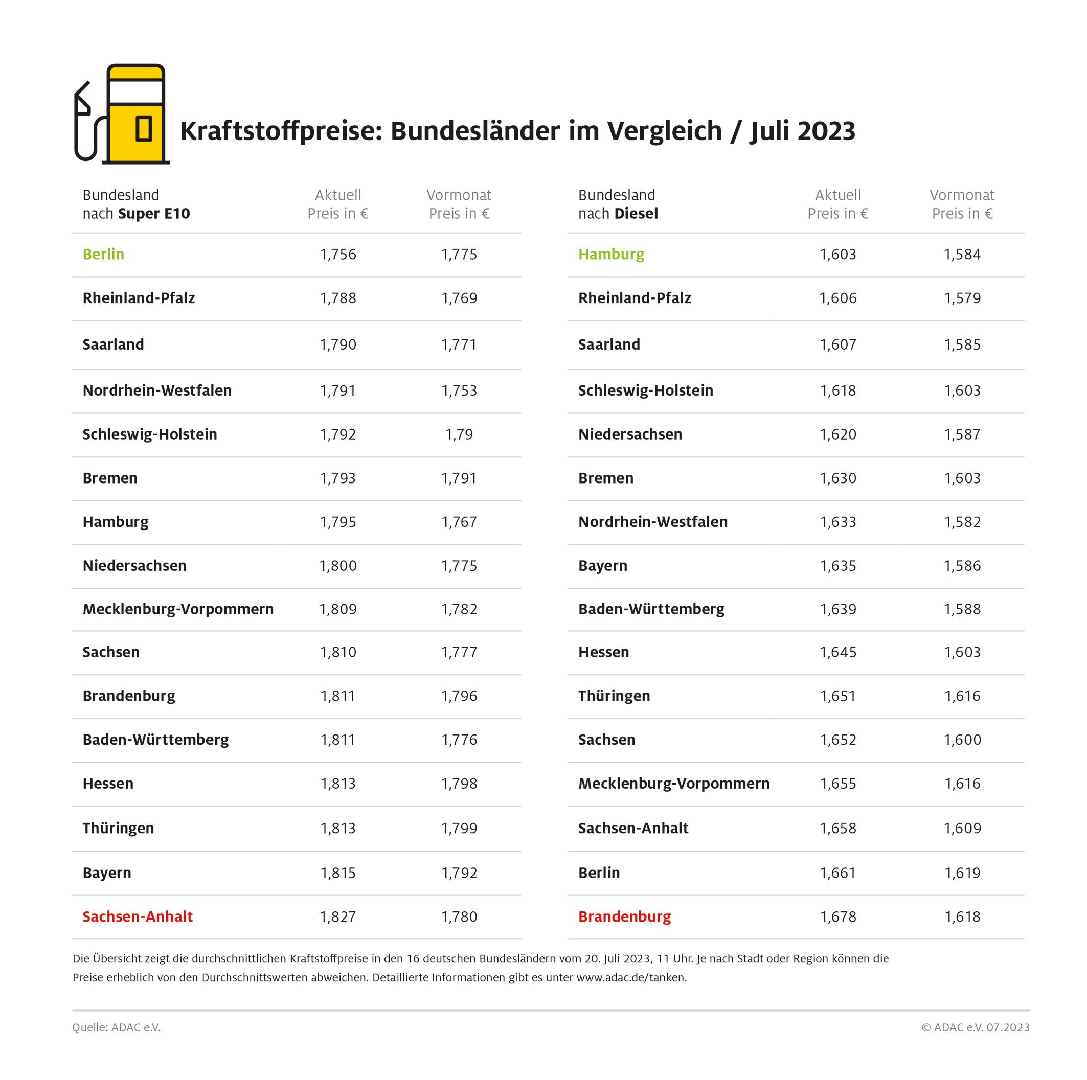 Kraftstoffpreise im Bundesländervergleich / Juli 2023