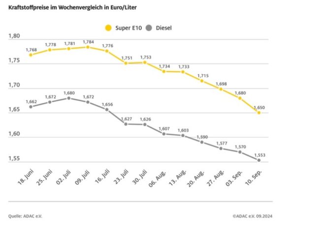 München (ots) Die Kraftstoffpreise sind erneut spürbar gesunken und mittlerweile auf dem niedrigsten Stand seit dem Jahreswechsel 2021/2022. Im Wochenvergleich ist vor allem der Preis von Benzin deutlich abgerutscht. Das zeigt die aktuelle ADAC Auswertung der Kraftstoffpreise in Deutschland. Danach kostet ein Liter Super E10 im bundesweiten Mittel 1,650 Euro und damit drei Cent weniger als…