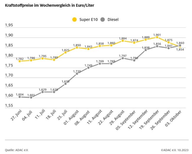 München (ots) Nach knapp acht Monaten hat der Preis für Diesel-Kraftstoff den Preis für Super E10 wieder überholt. So war Diesel zuletzt Mitte Februar teurer als Super E10. Das ergibt die aktuelle ADAC Auswertung der Kraftstoffpreise in Deutschland. Danach kostet ein Liter Super E10 im bundesweiten Mittel 1,854 Euro und damit 2,1 Cent weniger als vor…