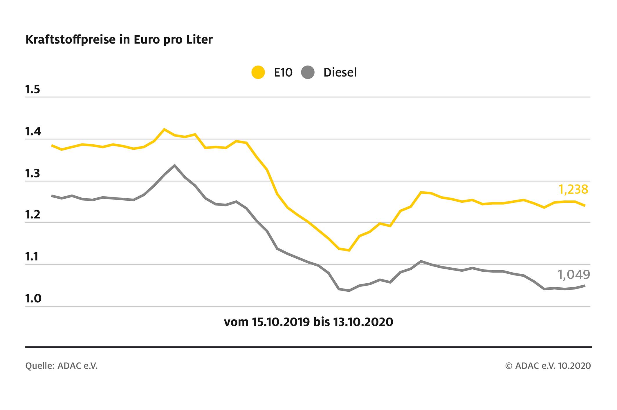 München (ots) – Während die Fahrer von Benzin-Pkw derzeit in den Genuss gesunkener Kraftstoffpreise kommen, müssen Diesel-Fahrer beim Bezahlen ihrer Tankrechnungen etwas tiefer in die Tasche greifen. Wie der ADAC mitteilt, kostet ein Liter Super E10 im bundesweiten Mittel derzeit 1,238 Euro. Im Vergleich zur Vorwoche macht dies einen Rückgang von einem Cent je Liter aus. Dies zeigt die wöchentliche ADAC Auswertung der Kraftstoffpreise in Deutschland.